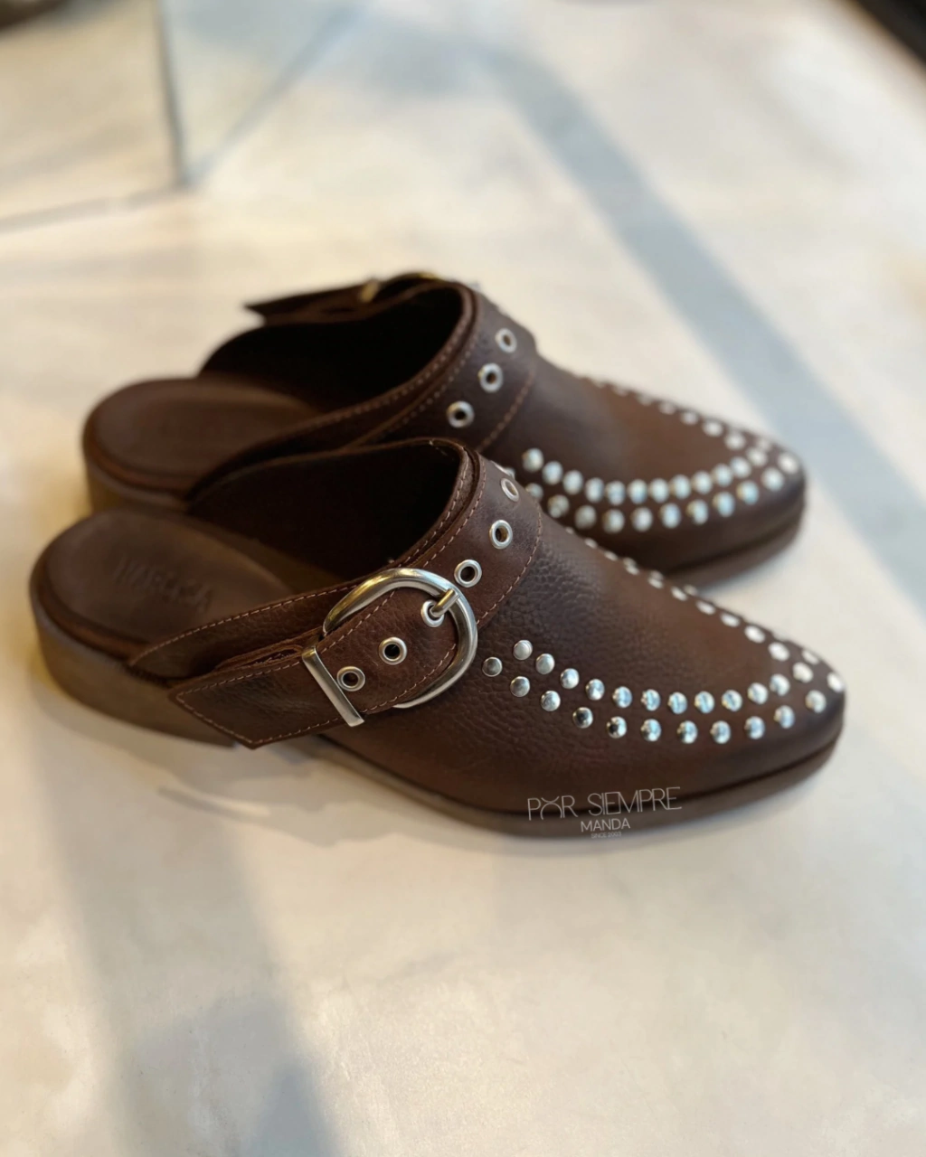 Descubrí el sueco clásico en cuero choco, un calzado que ofrece comodidad y un diseño sencillo. Cuenta con una base antideslizante a tono para mayor seguridad al caminar y taco de 3,5cm. El detalle de tachas y pulsera aporta un toque de estilo. Una opción práctica y funcional para el uso diario.